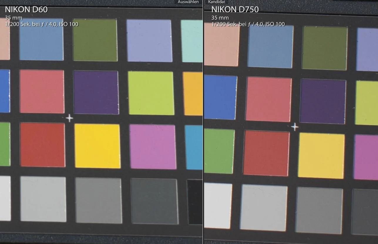 Have a look at the above colour chart shots, showing the D700, D810 and Z8 respectively. Firstly, a few points to reiterate from this article. The D700 has probably the best colour here and it is CMOS (however, it has a ‘thick’ CFA). Look at the golden yellow tones on the D700, and compare it to the weak, skewed pale yellow the D810 produces. Next the red: the D700 produces a gloriously punchy and vibrant red, whereas the D810 is ultimately very muted in comparison. There are other more subtle differences between those two. The blue tones for one (think skies!) and in the oranges. Also, consider that this is just a 24 colour chart. There are billions of hues in between those displayed here and many are also likely skewed. Also note how the D810’s auto white balance goofed here, producing a green tinge on the grey background. Even if Jules had shot this scene at at a fixed white balance, the colour differences would remain (as previously shown). This is a good test to see the auto white balance functionality.